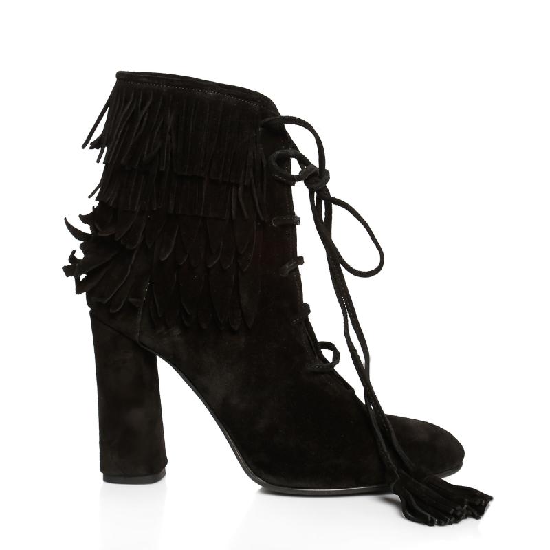 Siyah Süet Biye Bağcıklı Püsküllü Bot(bot-125)