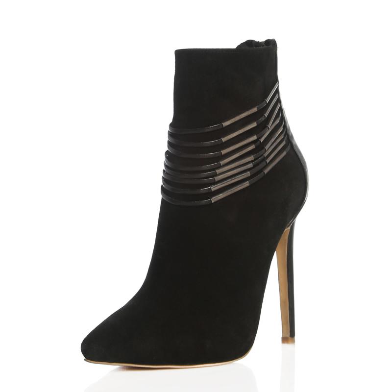 Siyah Süet & Deri Metal Aksesuar Biyeli Bot(bot-144)
