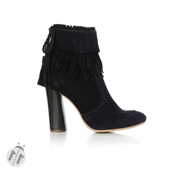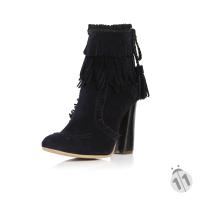 Siyah Süet Örgü Biyeli Püsküllü Bot(bot-189)