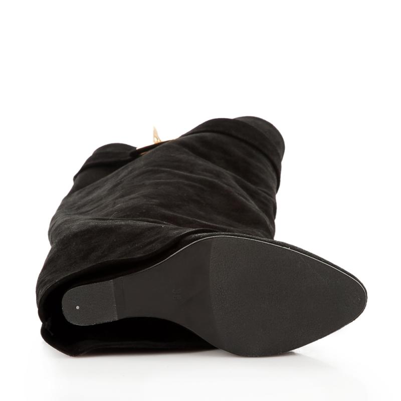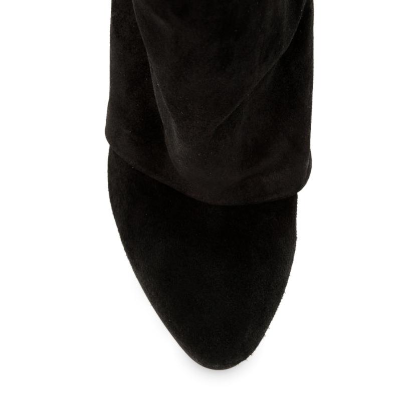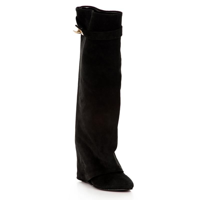 Siyah Süet Paçalı Dolgu Topuk Çizme