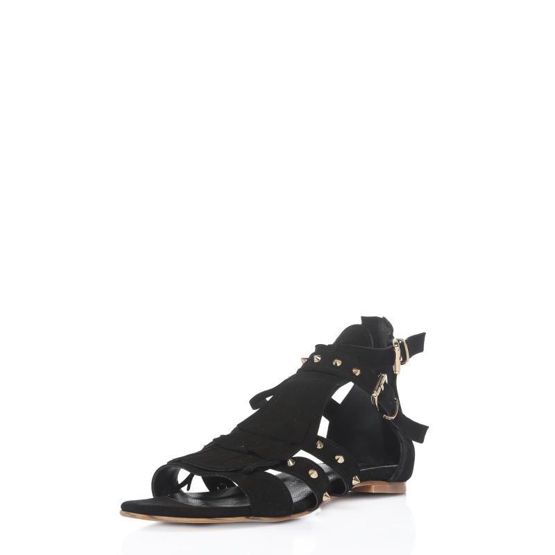 Siyah Süet Püsküllü Pimli Sandalet(a-288)