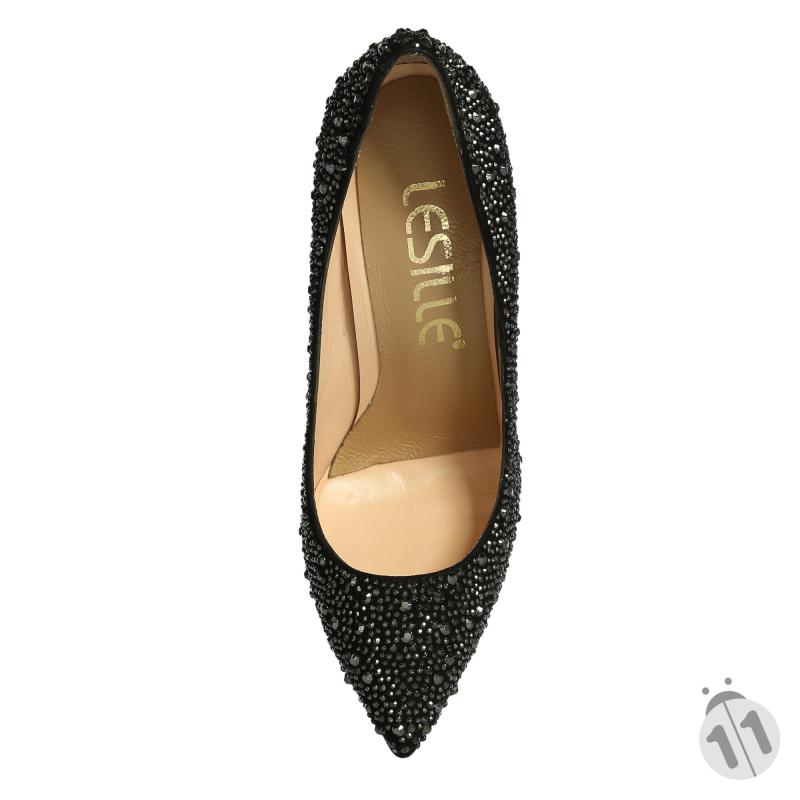 Siyah Süet Siyah Taşlı Stiletto Ayakkabı(a-198t)