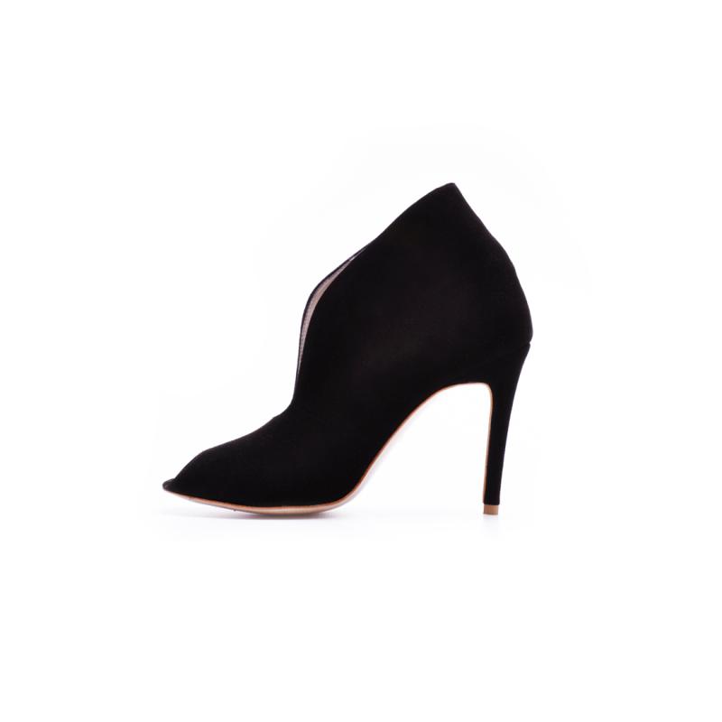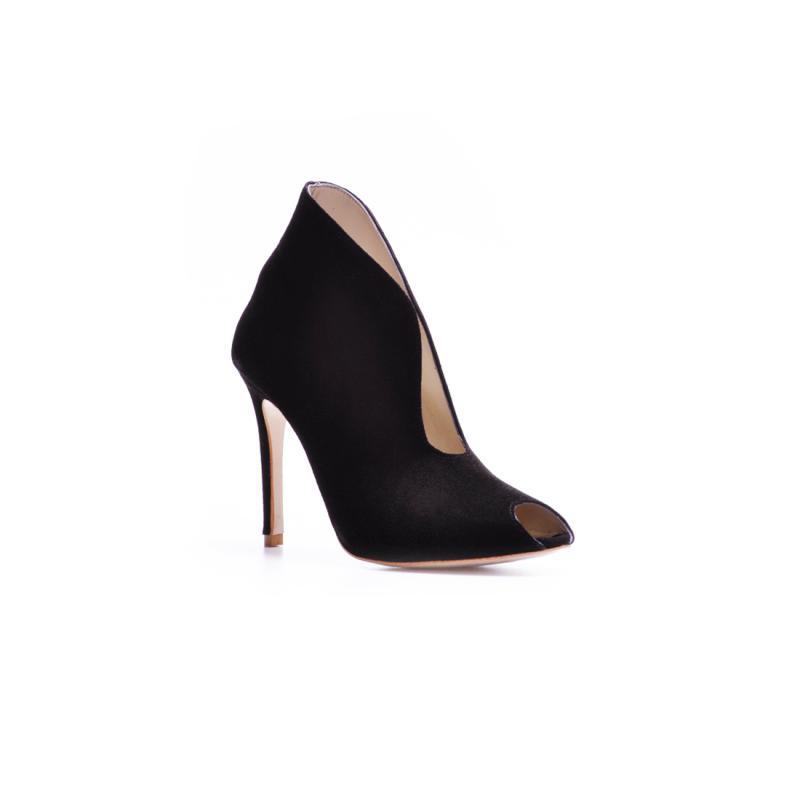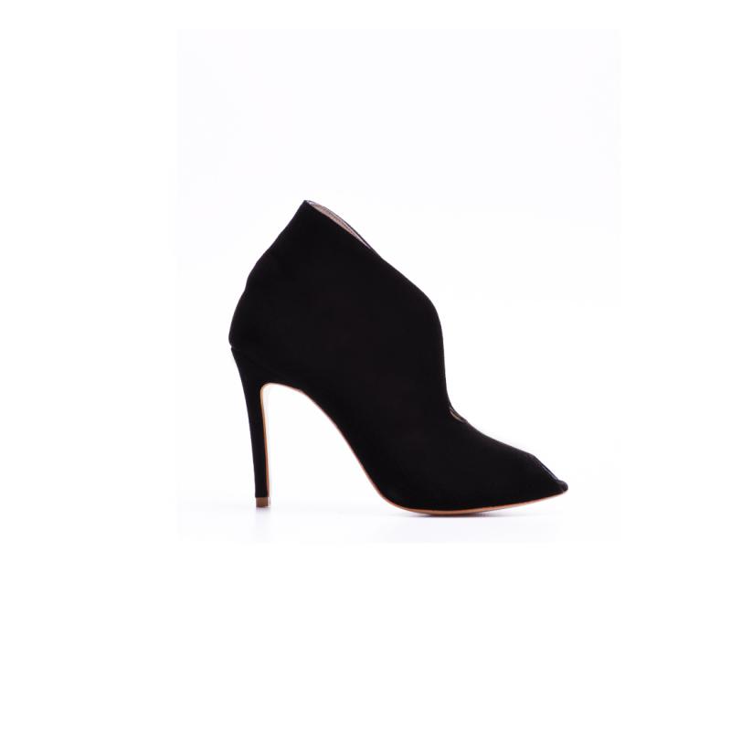 Siyah Süet U Kesim Burnu Açık Bootie(Bot-67)