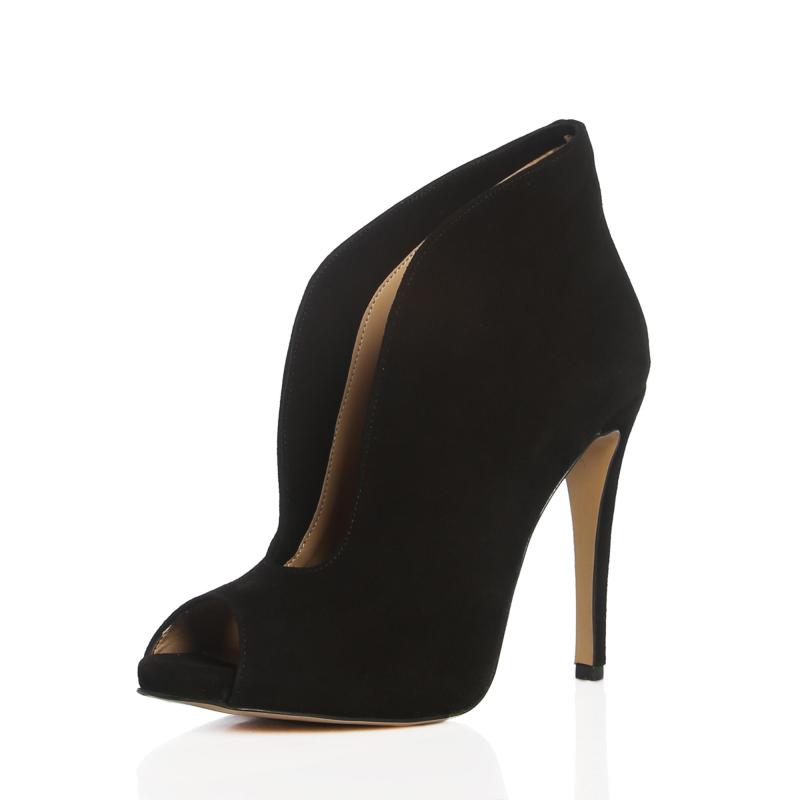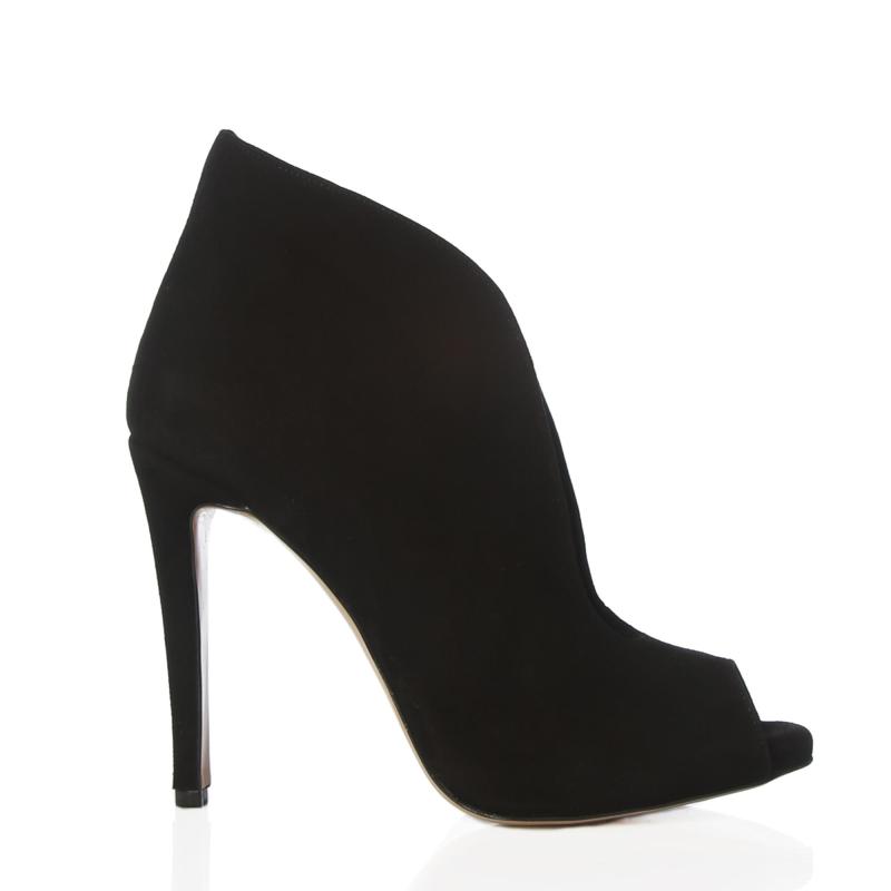 Siyah Süet U Kesim Burnu Açık Bootie(Bot-72)
