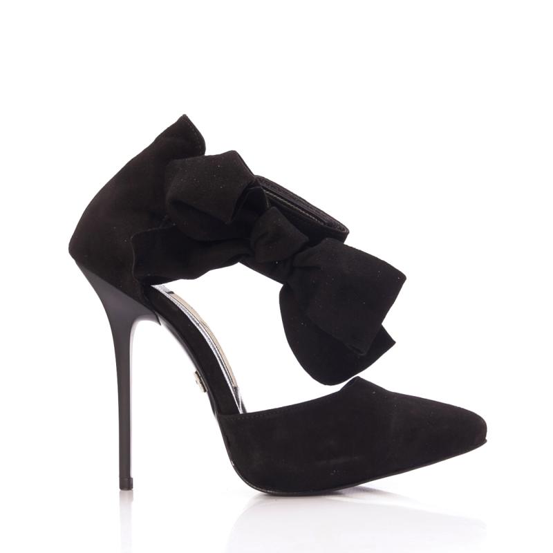 Siyah Süet Yandan Kurdele Fiyonklu Mabeyn Ayakkabı