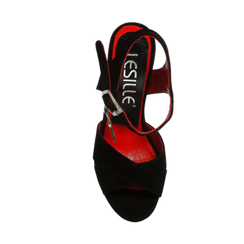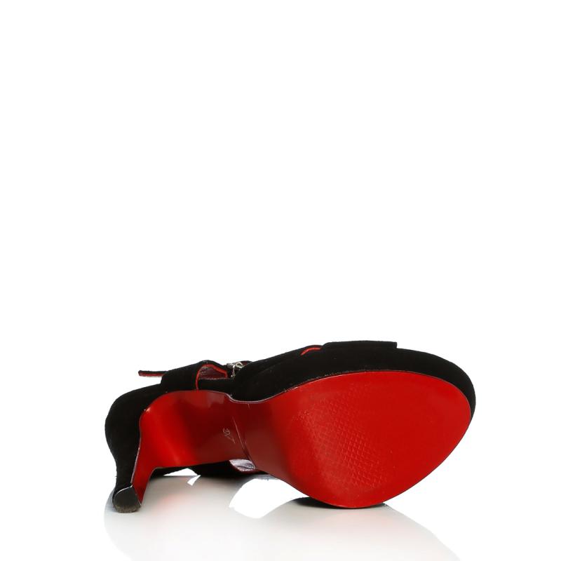 Siyah Süet Yandan Tokalı Çapraz Bantlı Ayakkabı