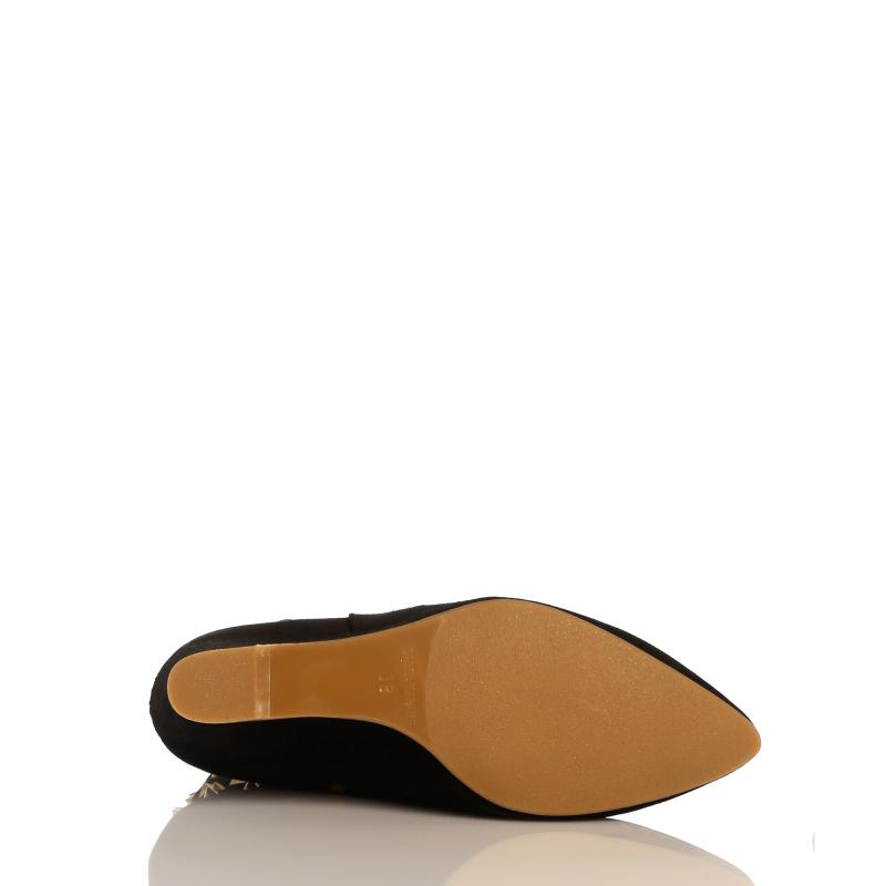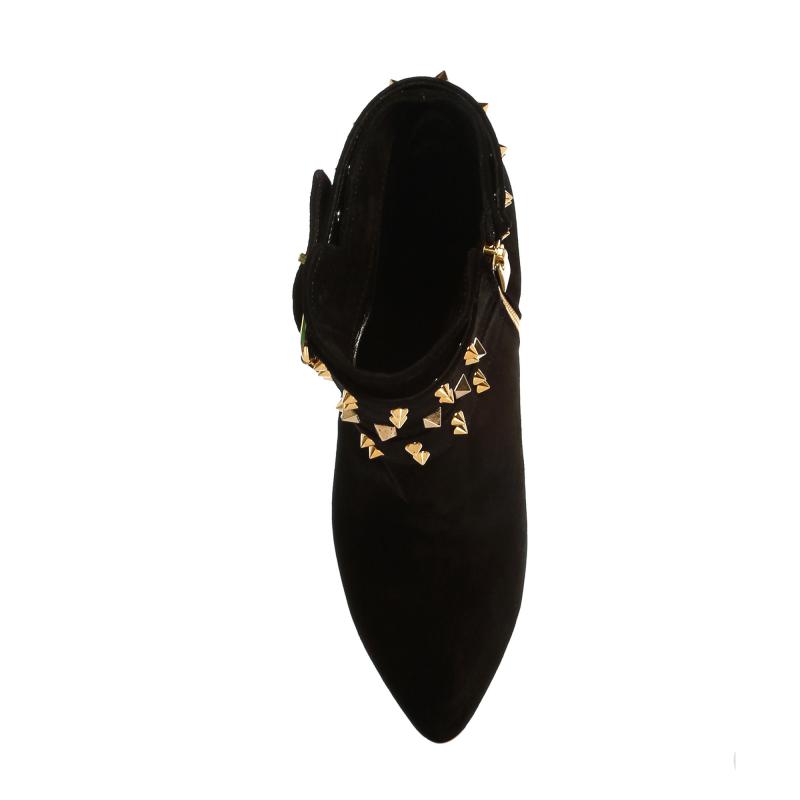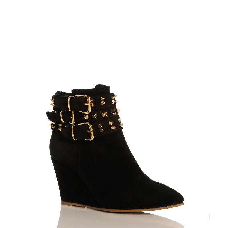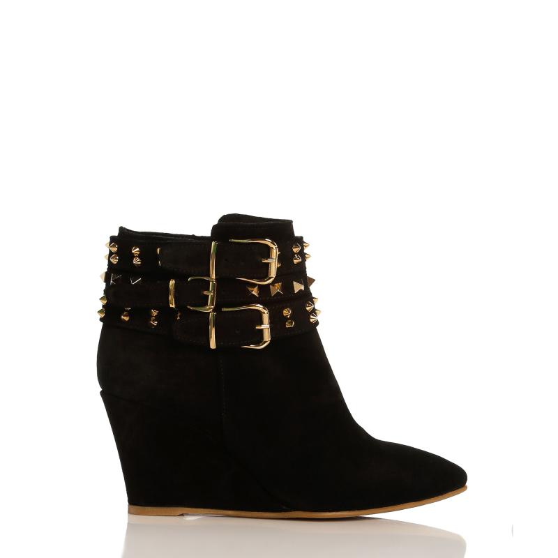 Siyah Süet Yandan Üç Tokalı Pimli Dolgu Topuk Bot