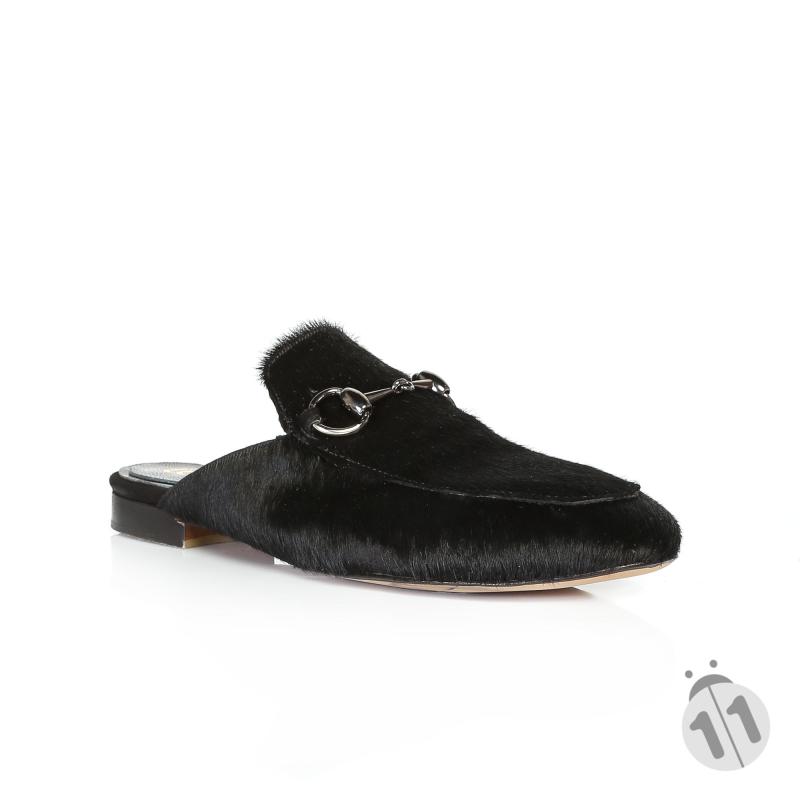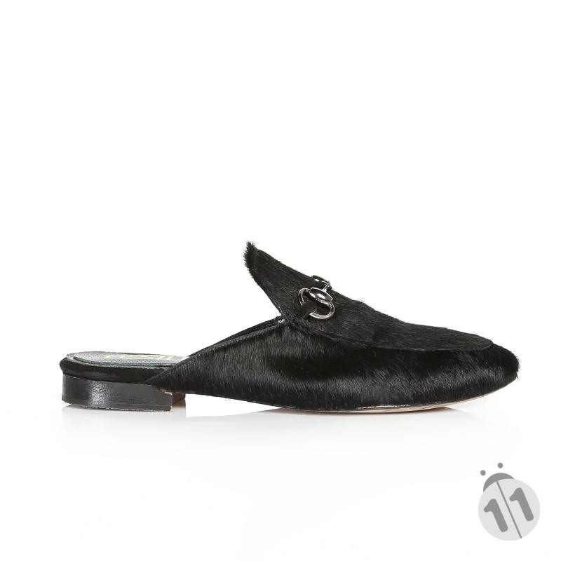 Siyah Tay Derisi Önü Tokalı Terlik