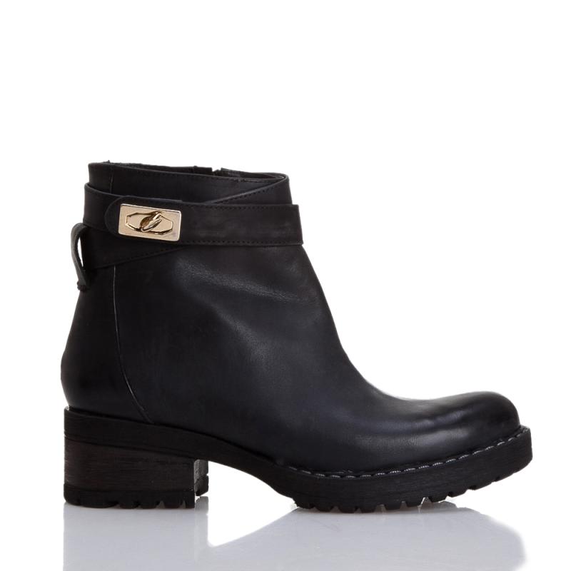 Siyah Yıkama Deri Yandan Kilit Tokalı Bot