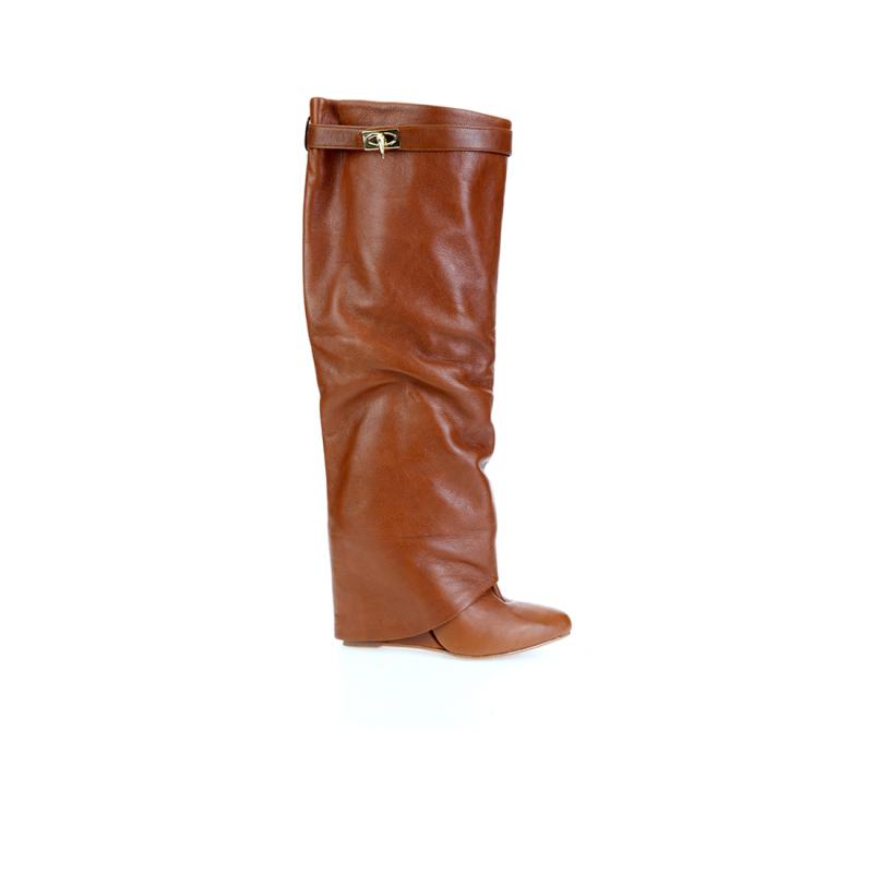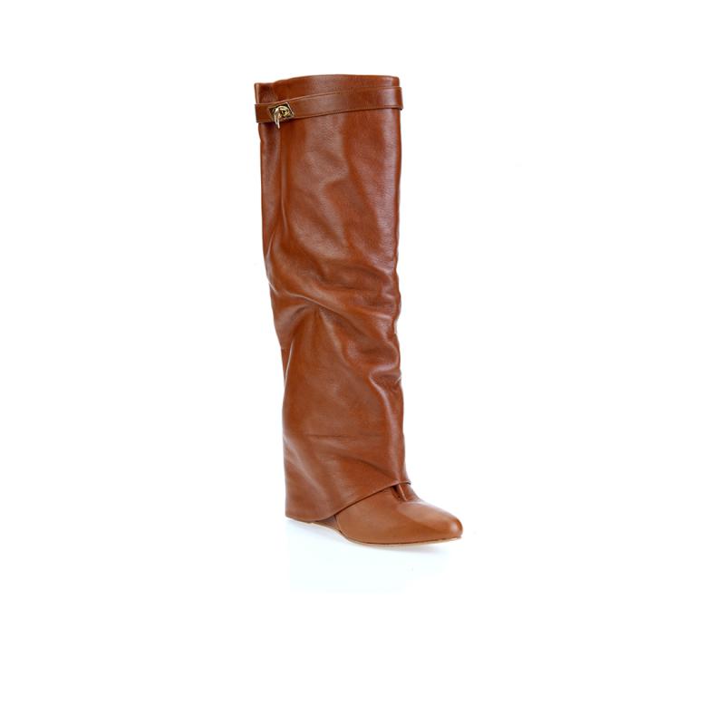 Taba Deri Paçalı Dolgu Topuk Çizme