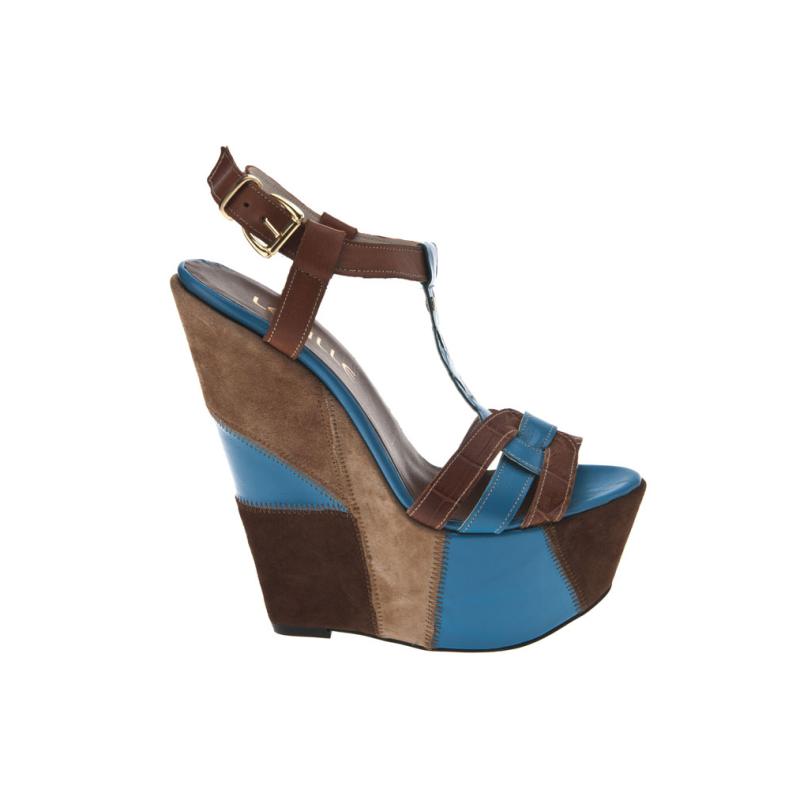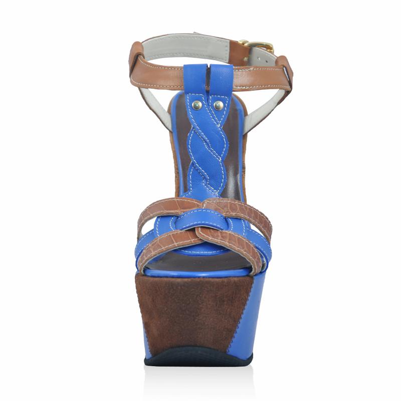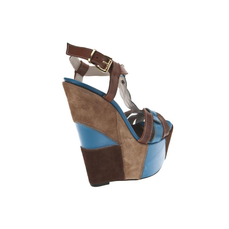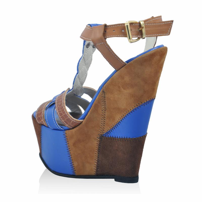 Taba & Kahverengi Süet Mavi & Taba Deri & Kahvrengi Krokodil Patchwork Dolgu Topuk Ayakkabı