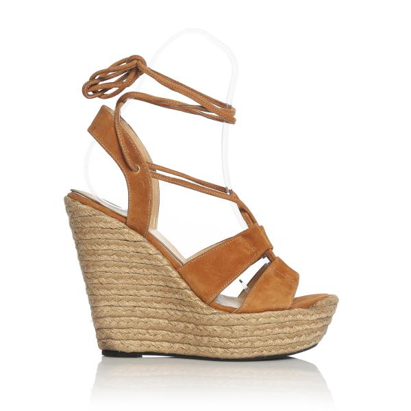 Taba Süet Biye Bağcıklı Mabeyn Dolgu Topuklu Ayakkabı(d-43)