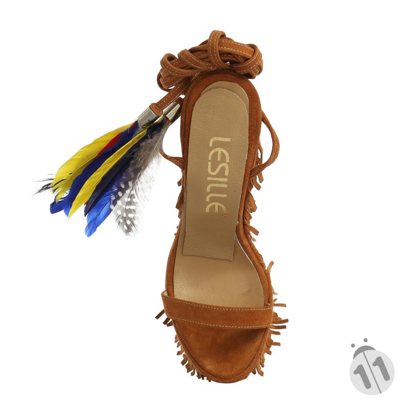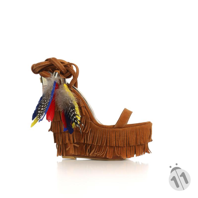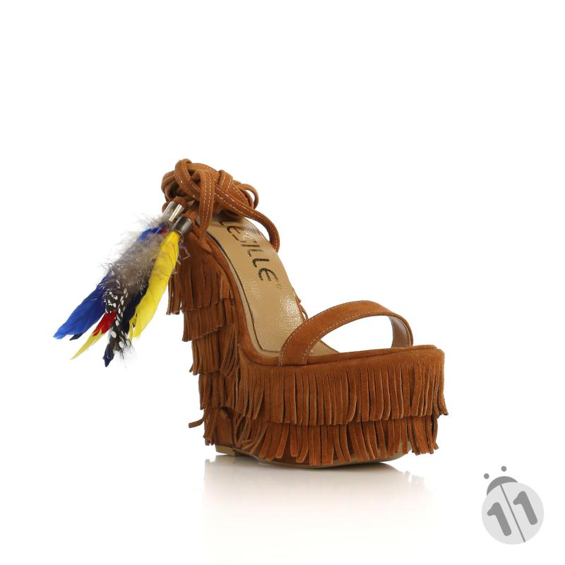 Taba Süet Püsküllü Tüylü Dolgu Topuklu Ayakkabı(d-38)