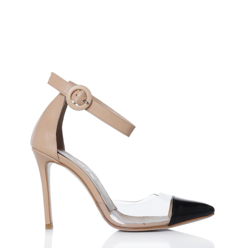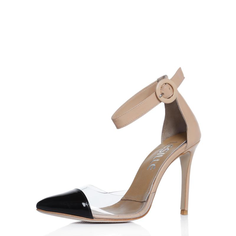 Tenrengi Deri & Siyah Rugan Şeffaf Mıkalı Bilekten Atkılı Ayakkabı(a-335)