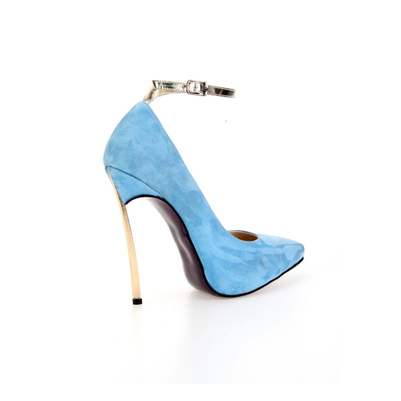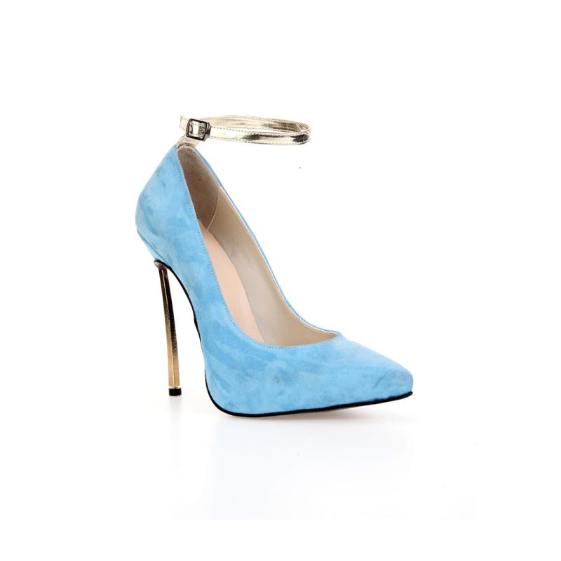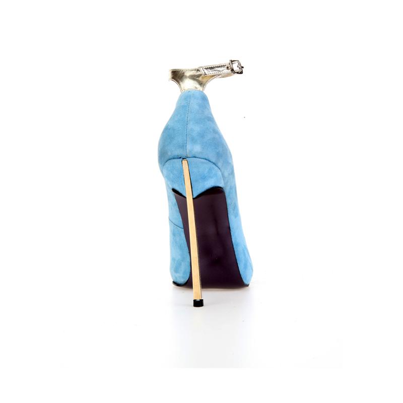 Turkuaz Süet & Dore Deri Bilekten Atkılı Çelik Topuk Sivri Burun Ayakkabı