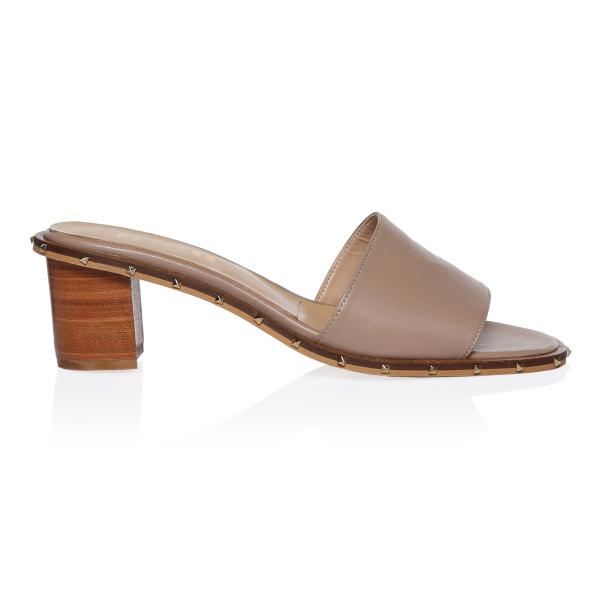 Vizon Deri Tek Bant Vardolası Pimli Topuklu Terlik(t-89y)
