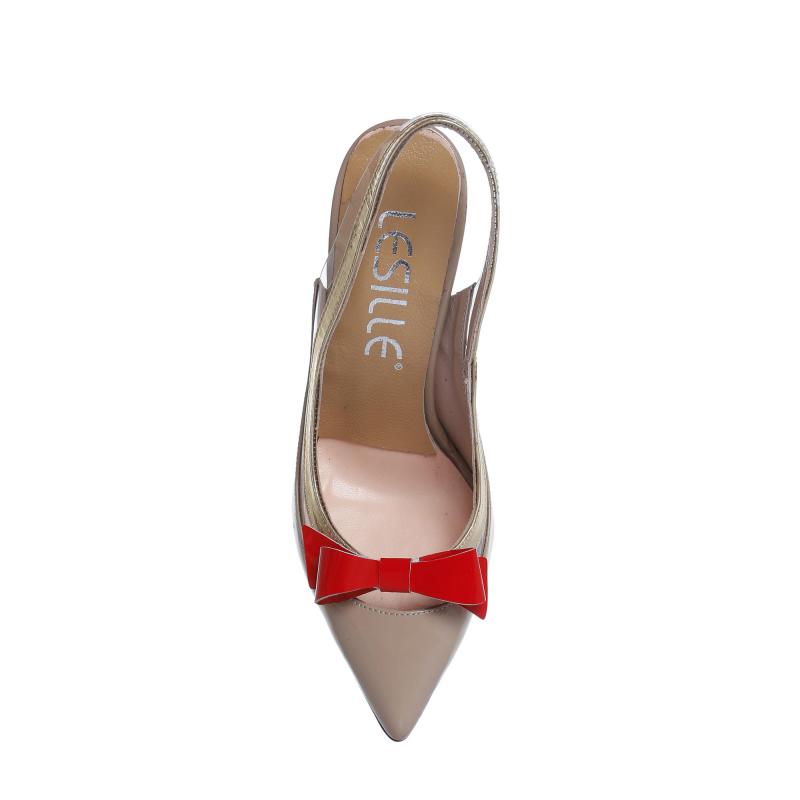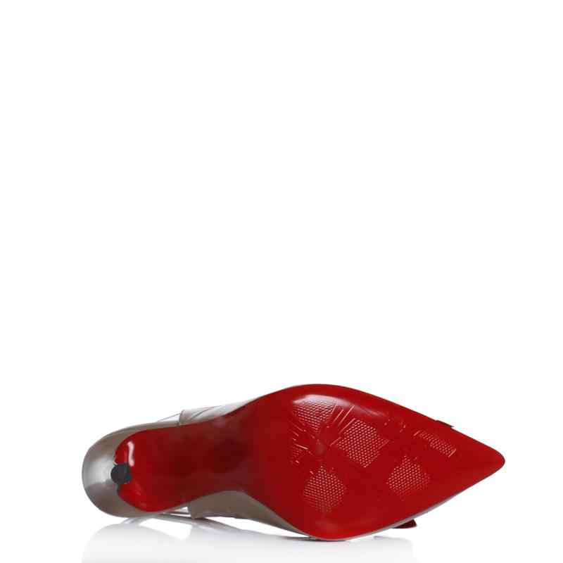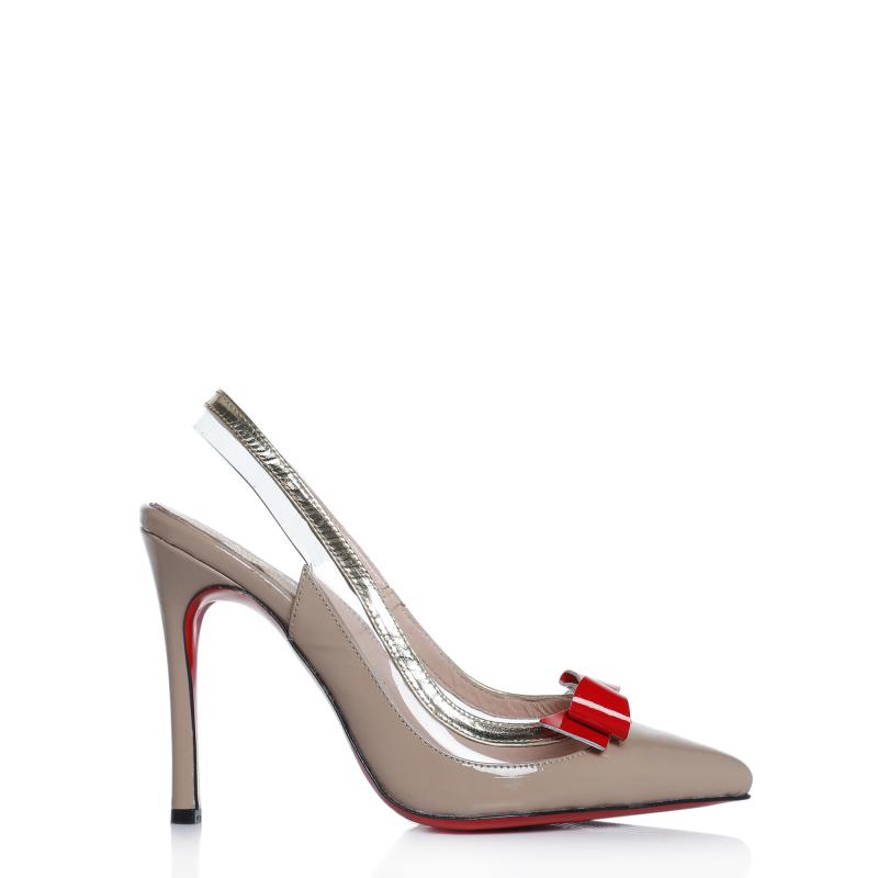 Vizon & Kırmızı & Dore Rugan & Şeffaf Mıkalı Fiyonklu Arkası Açık Ayakkabı