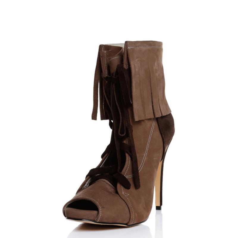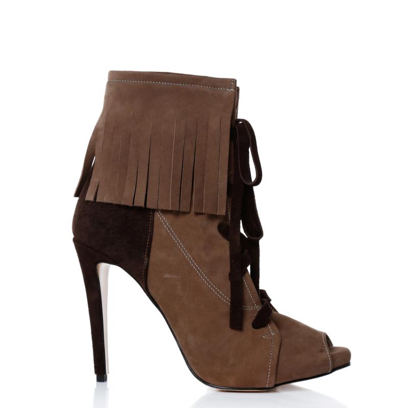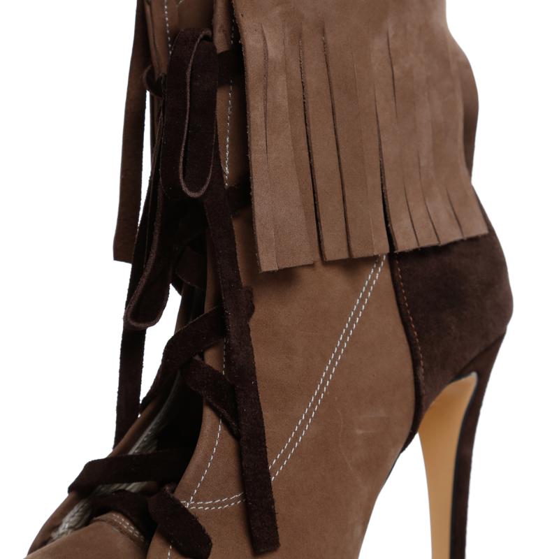 Vizon Nubuk & Kahverengi Süet Püsküllü Biye Bağcıklı Bot(bot-116)