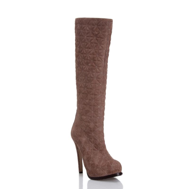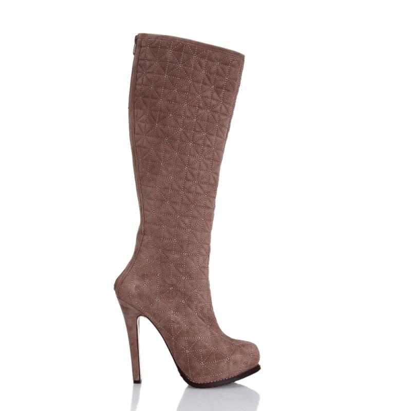Vizon Süet Kapitoneli Arkadan Fermuarlı Vardolalı Çizme