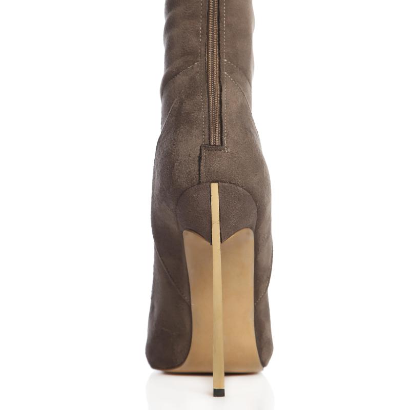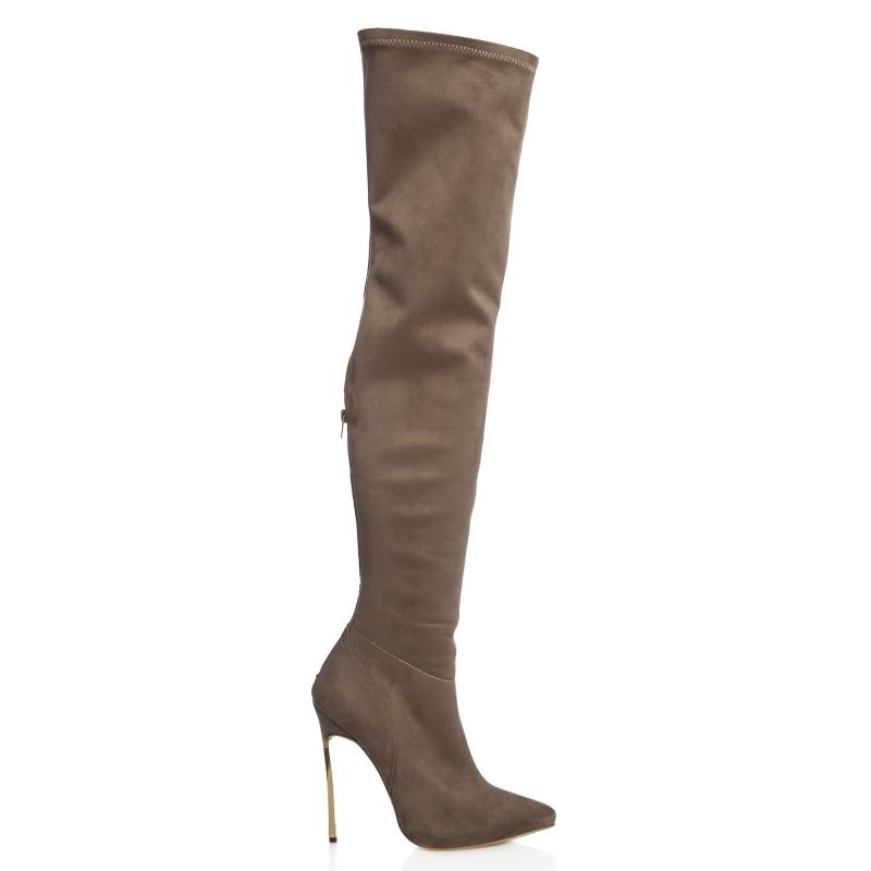 Vizon Süet Stretch Dizüstü Çelik Topuklu Çizme(c-45