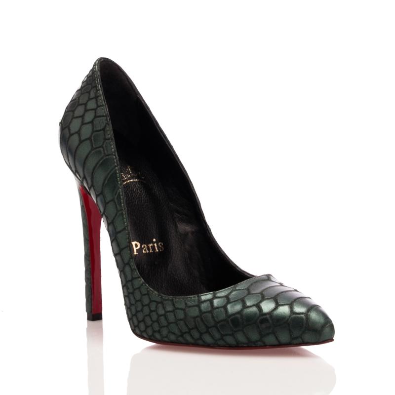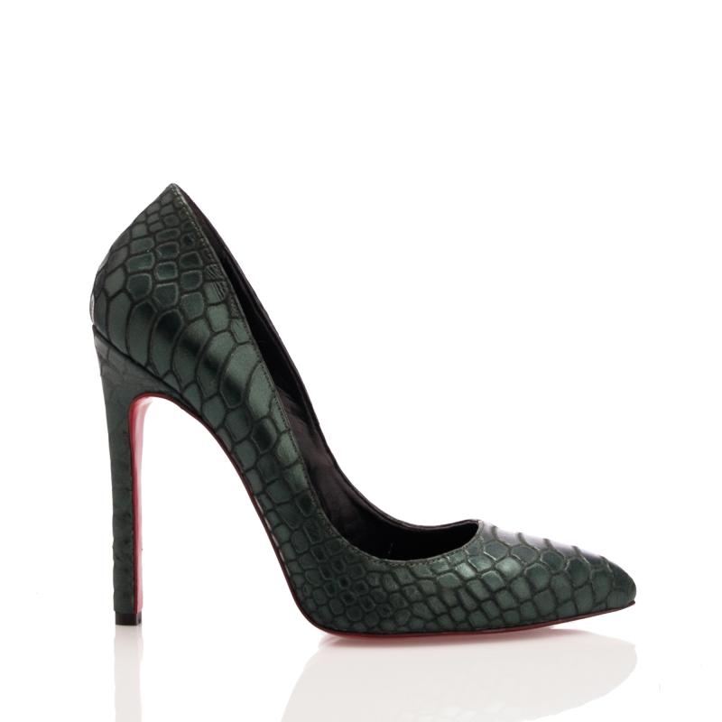 Yeşil Yılan Baskılı Krokodil Deri Stiletto Ayakkabı(A-198)